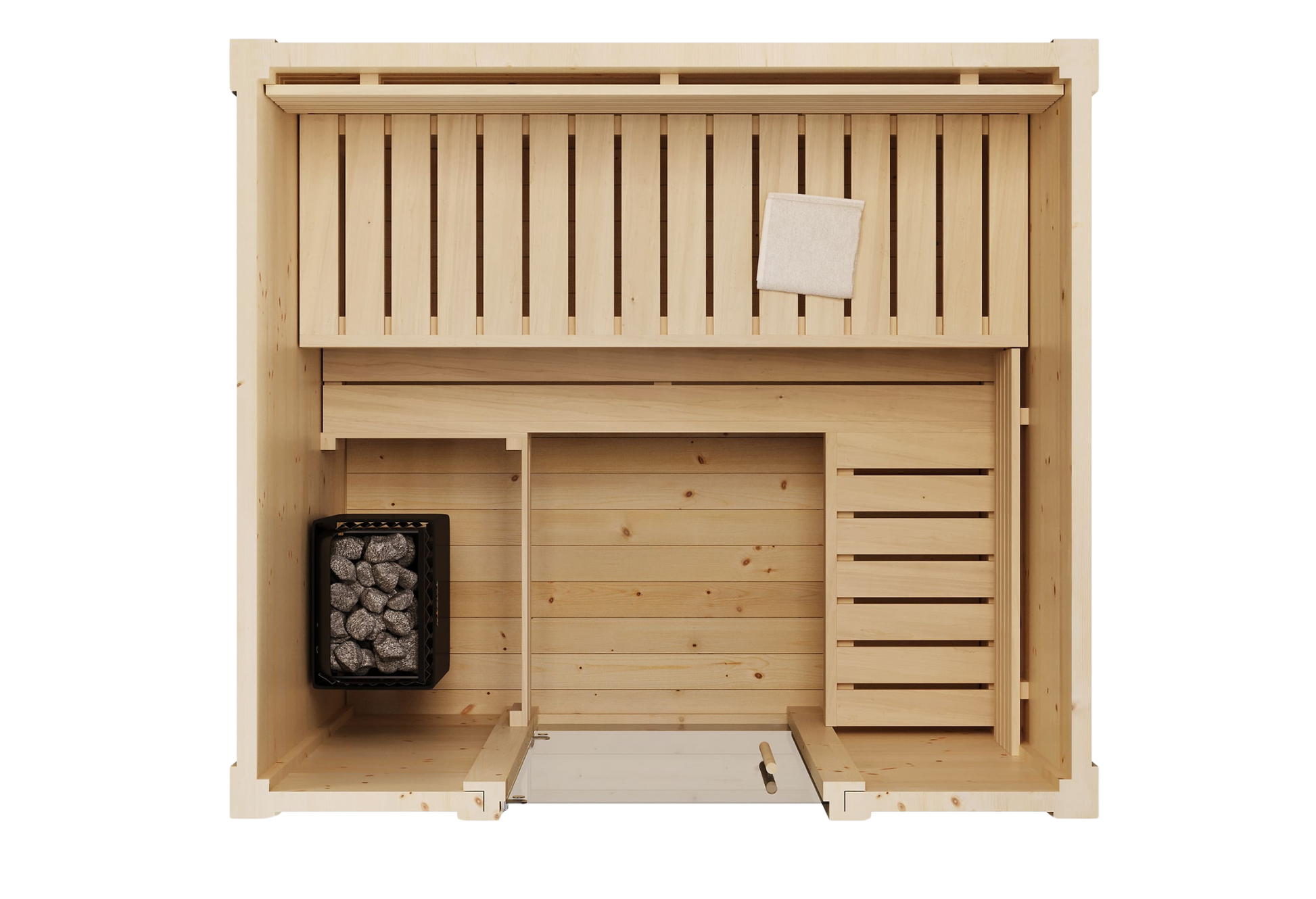 Elevate your wellness with the SaunaLife G2 traditional finish sauna kit, perfectly sized for up to 4, delivering intimate yet immersive sessions that boost circulation, ease muscle tension, and foster mental clarity. Ergonomic Aspen benches and backrests, contoured for ultimate comfort, invite you to sink in as the kiln-dried Spruce walls—1.65" thick with V-joint interlocking staves—retain heat efficiently, wrapping you in a cocoon of soothing warmth. Inhale the subtle, forest-fresh scent of premium Nordic wood, feel the soft heat from your choice of a wood-fired stove or 6kW electric heater, and bask in the ambient glow of indirect, dimmable LED lighting that sets the mood for reflection and wellness.
