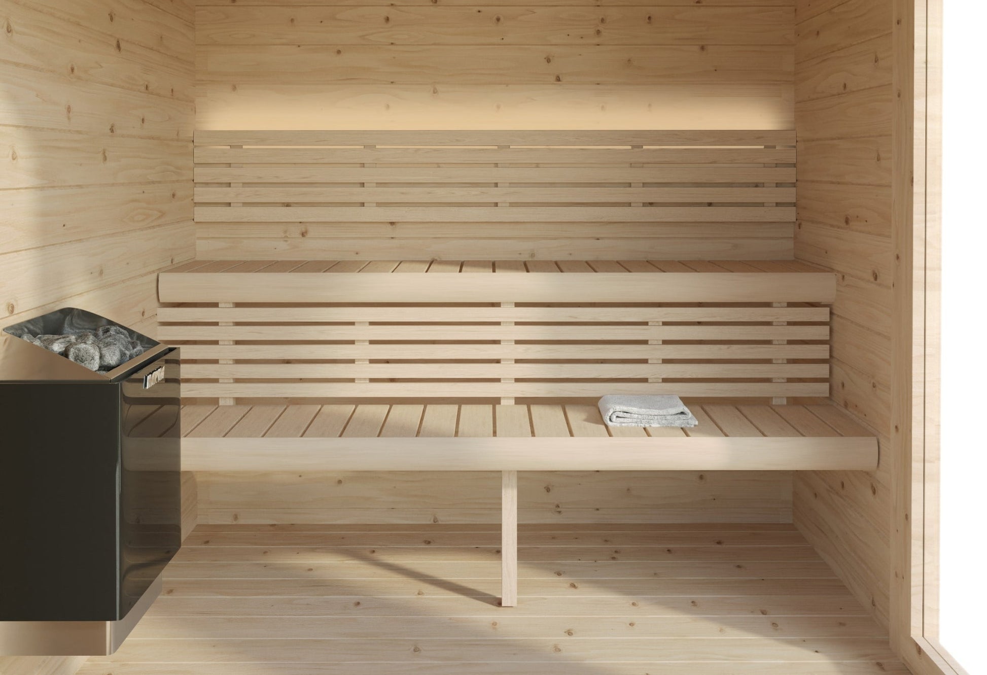 The SaunaLife G4 traditional finish sauna kit redefines outdoor luxury for up to 5 people, promoting robust heart health through improved blood flow, profound relaxation to quiet the mind, and gentle detoxification for radiant skin. Its full-glass front floods the space with natural light, while two-tier Aspen benches—soft and supportive—position you perfectly for optimal heat therapy. Sense the velvety texture of its premium Nordic Spruce construction, savor the crisp, pine-like scent mingling with steam from your choice of a wood-fired or electric heater, and adjust the low-voltage LED for a personalized, tranquil glow that enhances the meditative moment.