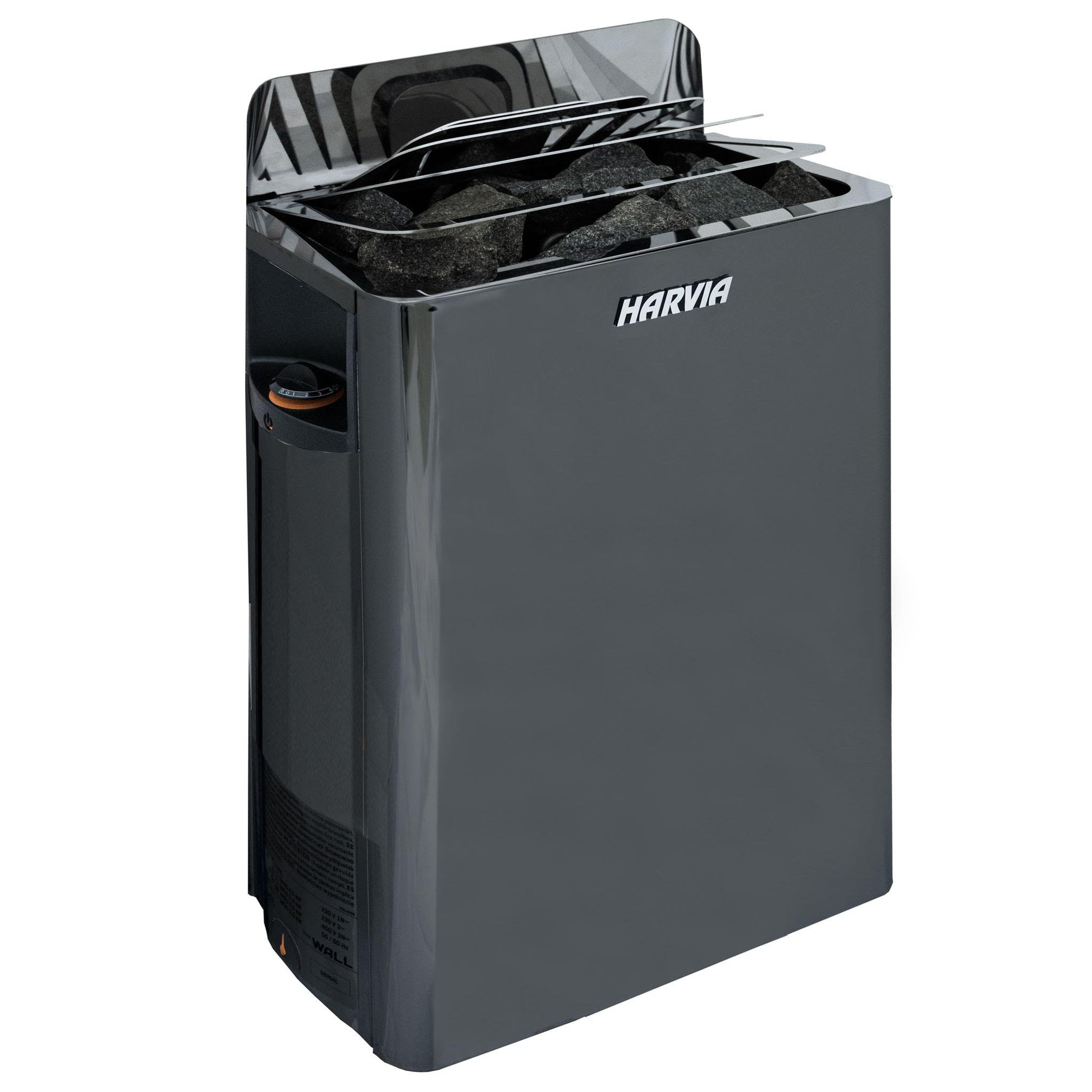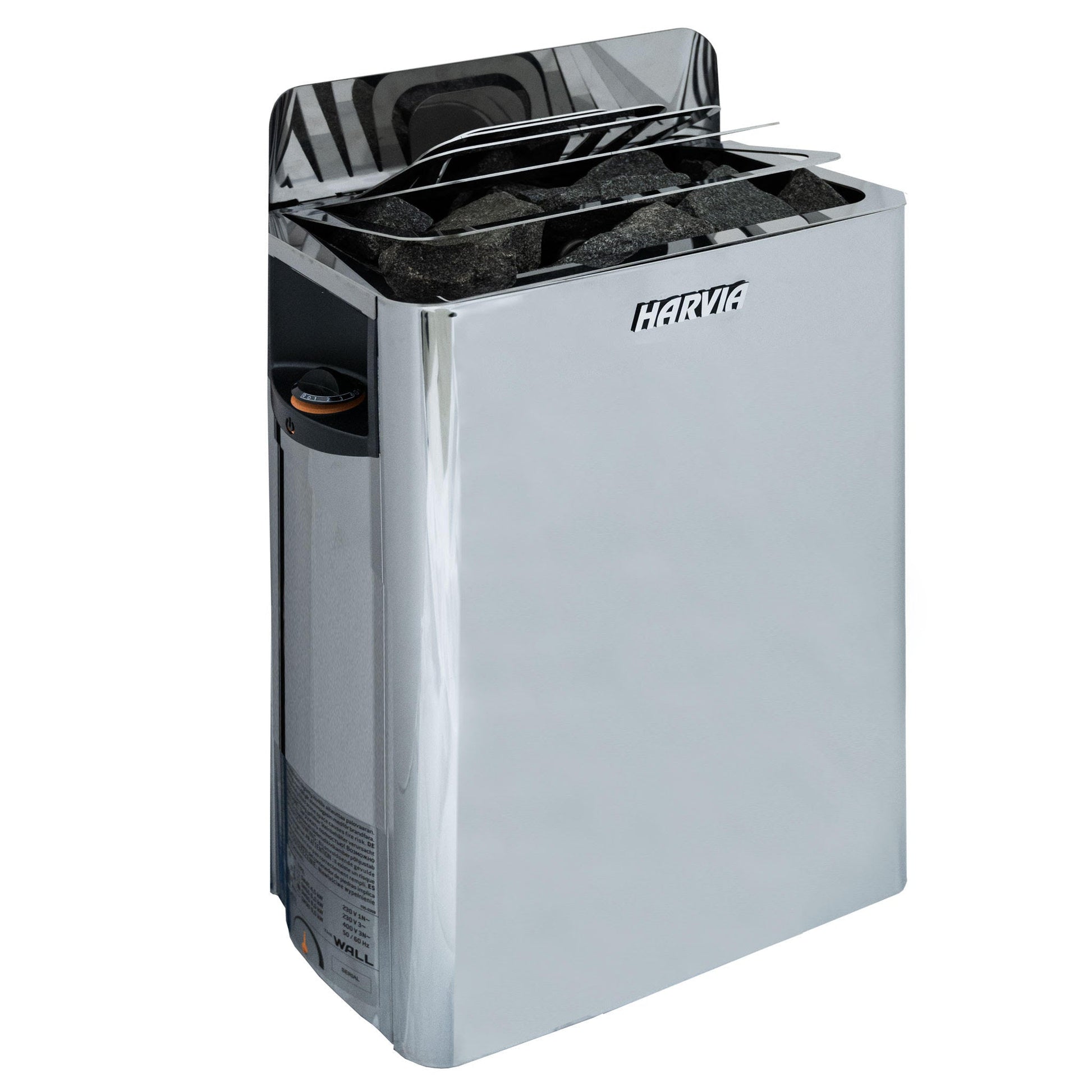 The Harvia "The Wall" electric heater is an exceptional wall-mounted sauna heater offering convenient top-side controls. It boasts a compact and stylish design, perfect for medium-sized sauna rooms. Made with sleek stainless steel and featuring illuminated operating switches, this heater combines fashion with function. Its modest stone cavity maximizes heat release, and the dual wall construction ensures that the exterior remains cool to the touch. The practical design allows for installation in both left and right-handed directions, giving you more options when designing your sauna interior. Plus, with high-quality materials and sturdy construction, this heater is built to last. Its extra-long heating elements transfer heat efficiently to the stones and sauna room.